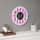 Monogram Pink Stripes Modernes Herzmuster Große Wanduhr