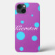 Dieses trendige lila und blaue Polka Dotcase ist mit Ihrem Namen in einem witzigen und lustigen Schriftart personalisiert!