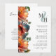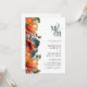Elegante Monogram QR Code UAWG Fall Blauer Herbst Einladung Hochzeit... Auf der Vorderseite unserer farbenfrohen Herbst-Monogramm-Hochzeitseinladung stehen die Initialen der Braut und des Bräutigams auf einem pastellfarbenen Ampere und über dem personalisierten Einladungstext in schwarzer Serif und sans serif Typografie auf einem knusprigen weißen Hintergrund. Unsere doppelseitige Hochzeitseinladung, die für Spätsommer- und Herbsthochzeiten konzipiert ist, zeigt wunderschöne Blume in dunklen aquamarinen, bordeauxfarbenen und orangefarbenen Tönen. Auf der Rückseite der Einladung befinden sich auch der QR-Code Ihrer Hochzeitswebsite sowie die URL der Website, mit der Ihre Einladenden einfach online UAWG können und alle Details, die normalerweise in einem Hochzeitspaket gesendet werden. Der QR-Beispielcode und alle Beispieltexte (außer den kalligraphischen Elementen) können mit eigenen Informationen über die Personalisierungsvorlage leicht überarbeitet werden.
