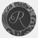 Monogram R Silver and Black Damask Wedding Siegel Runder Aufkleber