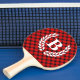 Maßgeschneidertes Pingpongpaddel mit rotem Büffel-Karo-Muster und Monogramm.