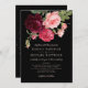 Monogram Rose Bouquet Elegant Black Wedding Einladung