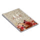 Die Grafik dieses Notebooks ist mit einem Glasdesign versehen. Ein Monogramm mit Terracotta-Pfirsich und goldenen Blume erscheinen auf einem Champagner (helles Gold) farbigen Imitat Glitzer Hintergrund.