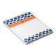 Mit Monogramm königsblaues Quarrefolienmuster mit orangefarbenem Notizblock.