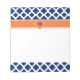 Monogram Royal Blue Quatrefoil Pattern mit Orange Notizblock