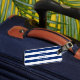 Mit Monogramm, königsblaue und weiße Streifen. Royal blau-weiß gestreiftes Muster mit Monogramm.