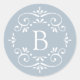 Dieses schicke Design ist eine schöne Möglichkeit, Korrespondenz, Gastgeschenke, Geschenke und vieles mehr zu personalisieren. Es bietet einen femininen, handgezeichneten Scrollrahmen, der Ihr individuelles Monogramm umgibt. Der Hintergrund ist französisch blau und kann mit der Farbe Ihrer Wahl angepasst werden.