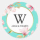Schöner mit Monogramm Aufkleber, perfekt als Umschlag Aufkleber, mit dem ersten in einem vergoldeten Kreis mit Kirschrecken Blume verziert.
