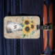 Mit unserem Monogram Rustic Sunflower Vintag Letter Decoupage Gepäckanhänger! Mit Aquarellbild von Gelben Sonnenblumen in einem Krug. Personalisieren Sie es für eine einzigartige Touch auf Ihren Reisen.