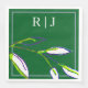 Monogram Sage Green Leaf Art Dusty Blue Wedding Serviette