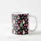 Fügen Sie Ihre Monogram oder Initials zu diesem Weihnachtsgenom für Weihnachts-Muster Black Coffee Tasse. Ein blaues Hintergrundmuster mit Gnomen, Geschenken, Heiligen, Süßigkeiten, Weihnachtsbäumen und Weihnachtssack. Personalisieren Sie dies mit Ihren Initialen. Bearbeiten Sie es für weitere Anpassungen.