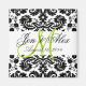 Save the Date mit Monogram und Bride and Groom Names Black Paisley Magnet Design von Elke Clarke ©2010. Passen Sie Ihre Namen, Monogramm, Hochzeitstag und Hintergrundfarbe an.