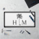 Diese moderne, an der Küste inspirierte Computerschreibmatte verfügt über eine niedliche Palmenpalme auf weiß mit einem Monogramm, das Sie mit Ihren Initialen personalisieren können.