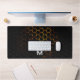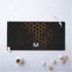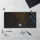 Personalisieren Sie Ihre persönlichen Daten mit Ihrem Anfangsnamen. Einzigartige coole Schreibtischmatte für Büro, Zimmer, Arbeit, Werkstatt, Spielzimmer... Orangefarbenes gelbes Feuer hellglänzend eleganten geometrischen schwarzen Hexagon Linien grafische Muster. Cooles graues, schwarzes Design für kühnen Menschen.
