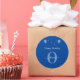 Monogram Script Happy Birthday Blue und White Runder Aufkleber