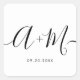 Monogram Script Hochzeitdatum Minimalistisch Quadratischer Aufkleber