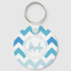Monogram Schlüsselkette mit Zickzack Hintergrund in blau und weiß .