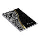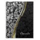 Eleganter metallischer, grauer und schwarzer Blumendampfer mit silbernen und goldenen, senkrechten Streifen. Benutzerdefiniertes Monogramm