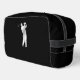 Die Funktion auf dieser Tasche ist eine Silhouette silber Golfer in vollem Schwung. Ihr Monogramm ist in passendem Silbergrau darunter. Auf der Rückseite ist die Silhouette Golfer ohne das Monogramm.