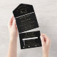 Moderne, einfache, schwarze und goldene, moderne, elegante Hochzeit Alles in einer Einladung. Dreifache Kalligraphie, minimale, einfache, einzigartige, moderne Hochzeitseinladungen. Passen Sie Ihre Daten an. Bestellen Sie rechtzeitig, um eine Enttäuschung zu vermeiden.