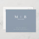 Monogram Simple Sleek Dusty Blue Save the Date Postkarte