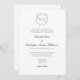 Eine traditionelle schwarz-weiße Formulierung mit Platz für die Eltern, wenn Sie wollen. Fügen Sie Ihre Initialen in den Kranz oben hinzu. Klassisch und elegant