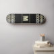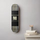 Dieses personalisierbare Skateboard kommt mit einem Monogramm und abstrakten Digitalwellen auf jeder Seite. Schriftart, Größe und Farbe des Monogramms können geändert werden. Der Hintergrund ist schwarz, aber Sie können ihn auch ändern. Modernes Skateboard.