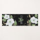 Eine schicke, atemberaubende, raffinierte, weiße und Imitat goldene Aquarell-Aquarellfarbe mit personalisierter Schriftzeichen-Typografie und einer San-Serif-Monogramm-Initial-Overlay mit einem dramatischen schwarzen Hintergrund auf diesem schicken, eleganten, modernen Yogamat. Personalisieren Sie Ihre Namen und Monogramm Initial. Macht jedes Mal, wenn Sie daran arbeiten, eine lustige und stilvolle Aussage. Ein großartiges und inspirierendes Geschenk!