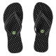Polka dot monogramm flip flops. Schwarz mit kleinen weißen Polka-Punkte und runde Monogramm in grün und pfirsichfarben.