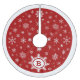 Monogram Weihnachtsbaumrock Anpassbarer Roter Baumrock mit weißen Schneeflocken und weißem Rand. Große Schneeflocke in der Mitte vor dem Rock, wo Sie Ihren ersten Platz hinzufügen können. Einzigartiger Weihnachtsbaumrock personalisiert mit dem Monogramm des Familiennamen.