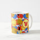 Dieses monogramm Softball Design ist sehr eindrucksvoll und anziehend. Es zeichnet sich durch einen roten und blauen Hintergrund aus, der mit Handschuhen, Softballs und Fledermäusen gemustert ist. Schauen Sie auf Ihrem Schreibtisch bei der Arbeit oder behalt in Ihrer Küche für eine warme Tasse Kaffee. Kaufen Sie noch heute Ihre Tasse! Kunstwerk erstellt von: AMBillustrations http://www.etsy.com/shop/AMBillustrations/