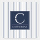 Chic nautisch weiß und marineblau Design mit Streifen und Ihrem Namen und initiale in der dunklen Marine Quadrat Rahmen. Frisch, prächtig im Sommer.