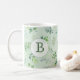 Diese Tasse verfügt über einen Aquarellkranz mit grünen Blätter und Blattwerk. Sie können den Text mit einem Initial personalisieren. Bitte besuchen Sie die Sammlungs-Seite in unserem Geschäft, um das komplette Sortiment an Braut- und Hochzeitsprodukten mit diesem Design zu sehen.