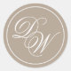 Monogram Taupe Elegant White Calligraphy Initials Runder Aufkleber