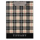 Stilvoll und elegant, ist diese Monogram Thomson Camel Tartan Karierte Pattern Zwischenablage ideal für Zuhause, Büro oder Schule. Das karierte Flanellmuster Thompson Camel ist schwarz, bräunlich (Kamel), rot und weiß, und die weiße Typografie "Tiffany" kann so geändert werden, dass sie jedermanns Namen oder beliebtes Sprichwort/Zitat passt. Großartiges Geschenk für Lehrer.