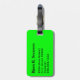 Gepäckanhänger mit kalkgrünen Monogramm-Initial(en)/Name auf einem dreiseitigen Monogramm-Rahmen mit schwarzem Streifen, Name und Adressinformationen auf einem limiengrünen Hintergrund. Personalisieren Sie Ihre Monogramm-Initial(en)/Name, Name und Adressinformationen mithilfe der einfachen Vorlagen. Schriftart, Schriftart, Schriftart und Kalkgrün sind anpassbar.