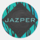 Monogram Tiger Schwarz und Aquamarines Druckmuster Runder Aufkleber