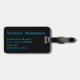 Gepäckanhänger mit blauem Beckenwasser, Monogramm-Initial(en)/Name auf einem Monogramm mit schwarzem Streifen, Name und Adressinformationen auf schwarzem Hintergrund. Personalisieren Sie Ihre Monogramm-Initial(en)/Name, Name und Adressinformationen mithilfe der einfachen Vorlagen. Schriftart, Schriftart, Schriftart und schwarze Hintergrundfarbe sind anpassbar.