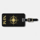 Gepäckanhänger mit Imitat Goldkompass, Monogramm Initial(en)/Name auf einem Monogramm-Rahmen mit schwarzem Streifen, Name und Adressinformationen auf schwarzem Hintergrund. Personalisieren Sie Ihre Monogramm-Initial(en)/Name, Name und Adressinformationen mithilfe der einfachen Vorlagen. Schriftart, Schriftart, Schriftart und schwarze Hintergrundfarbe sind anpassbar.