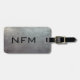 Gepäckanhänger mit Monogramm-Initial(en)/Name, Name und Adressinformationen auf einem Imitat, der auf metallischem Hintergrund gekratzt ist. Personalisieren Sie Ihre Monogramm-Initial(en)/Name, Name und Adressinformationen mithilfe der einfachen Vorlagen. Schriftart, Schriftart und Schriftart sind individuell einstellbar.