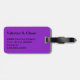 Gepäckanhänger mit schwarzer E-Bass-Gitarre auf lila Hintergrund, Monogramm-Initial(en)/Name auf einem Monogramm-Rahmen mit schwarzem Streifen, Name und Adressinformationen auf einem lila Hintergrund. Personalisieren Sie Ihre Monogramm-Initial(en)/Name, Name und Adressinformationen mithilfe der einfachen Vorlagen. Schriftart, Schriftart, Schriftart und lila Hintergrundfarbe können individuell angepasst werden.