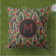 Das Monogramm auf einem Hintergrund von grünen tropischen Blätter und roten Ingwer-Pflanze auf einem geometrischen, schwarz-Elfenbeinmuster-Hintergrund, sind diese Kissen ein wunderschöner Akzent auf Ihrem Sommerterrasse. PASSENDE Artikel in unserem Geschäft.