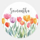 Monogram Tulips Frühlingsblumen farbenfroh und frö Runder Aufkleber