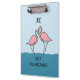 Monogram Two Pink Flamingos on Water Zitat Klemmbrett