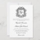 Diese elegante formelle Hochzeitseinladung enthält ein verziertes Vintages Wappen mit Monogramminitialen der Braut und des Bräutigams, in extravaganter Kalligraphie-Schrift verwoben.