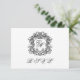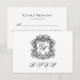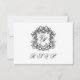 Diese elegante, horizontal ausgerichtete Hochzeitskarte verfügt über ein elegantes Wappen mit extravaganter Schriftzeichen-Kalligraphie für die Initialen der Braut und des Bräutigams auf der Vorderseite sowie über das Antwortdatum und die Menüauswahl auf der Rückseite.