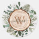 Bringen Sie die Zuhause der Naturschönheiten mit unserem Monogram Watercolor Rustic Wood Slice und Foliage Classic Round Sticker. Eine Touch Wald und Landzauber Eleganz für Ihren Stil! Fügen Sie Ihren Familiennamen zuerst hinzu und machen Sie ihn zu Ihrem eigenen