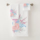 Monogram Watercolor Bouquet Pink Roses Blue Blätte Badhandtuch Set