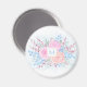 Monogram Watercolor Bouquet Pink Roses Blue Blätte Magnet