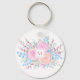Monogram Watercolor Bouquet Pink Roses Blue Blätte Schlüsselanhänger